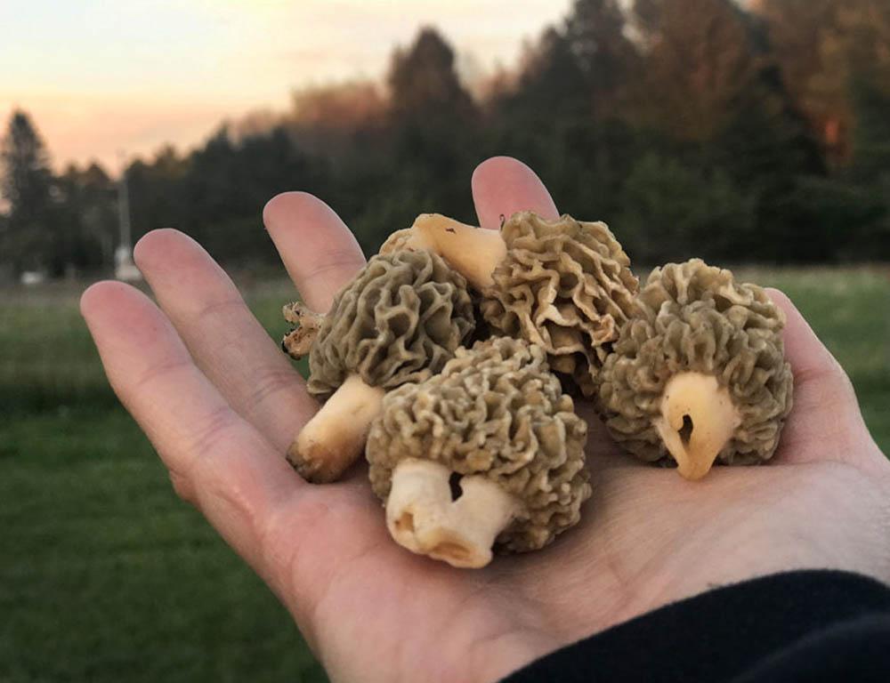 It is important to thoroughly clean mushrooms before storing or cooking them. Cut them open lengthwise, remove any insects or slugs and wash them in clean water. Morels are best fresh but if you are fortunate enough to find a lot of them, they can be dried with a food dehydrator. After drying, put them in a sealed container and freeze them if you will not be consuming them in the near future. Dried mushrooms can be rehydrated using water or your perfect stock and prepared as you would with fresh morels. Morels are wonderful cooked with other spring favorites like trout, fiddlehead ferns, ramps and asparagus. There are a wealth of recipes with morels as the main focus of a dish such as sautéed, tempura fried, stuffed or as the main flavor in risotto or soup. They are also a popular addition to sauces.